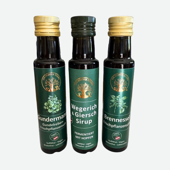 Das Kennenlern-Paket vereint die Kraft von Giersch, Brennnessel und Gundelrebe – drei wertvolle Heilpflanzen mit einer langen Tradition in der europäischen Naturheilkunde.