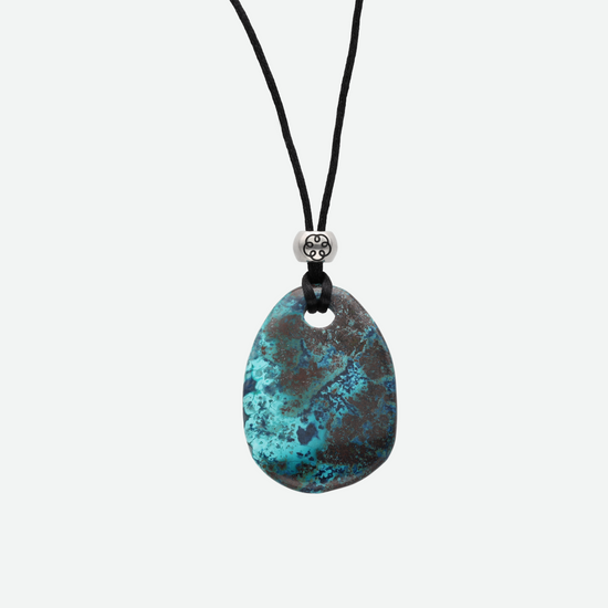 Der Optimismus Anhänger vereint natürliche Schönheit mit einer kraftvollen, symbolischen Bedeutung. Der handverlesene Shattuckit-Stein zeigt faszinierende Blau- und Grüntöne, die Ruhe, Klarheit und innere Stärke widerspiegeln. In Kombination mit einer hochwertigen Edelstahlfassung und einer filigran gravierten Energiespirale entsteht ein Anhänger, der nicht nur ästhetisch begeistert, sondern auch auf spiritueller Ebene inspiriert.