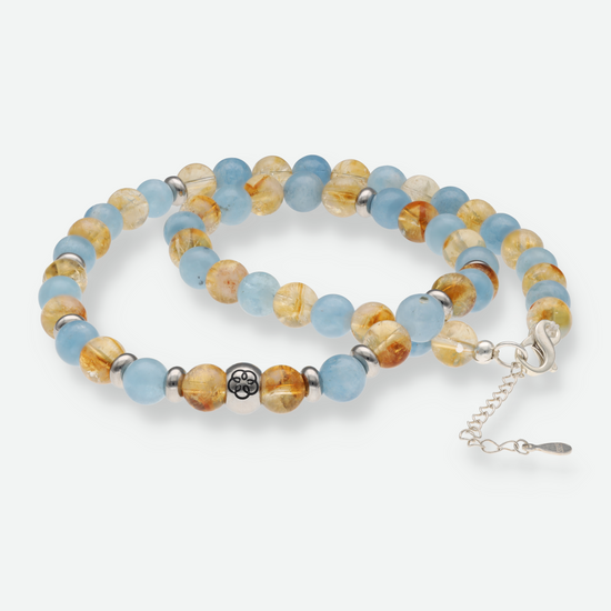 Ob als täglicher Begleiter, beim Meditieren oder als stilvolles Schmuckstück – Aquamarin und Citrin verbinden sich zu einer kraftvollen Symbiose für mehr Klarheit, Lebensfreude und Balance in deinem Alltag.